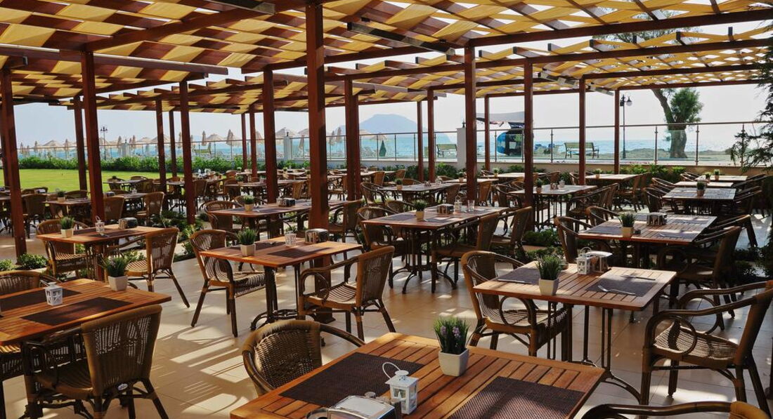 Піщаний пляж знаходиться поруч з готелем. Парасольки, шезлонги, пляжні рушники – безкоштовно. Захід у море пологий, піщаний, можливе каміння.