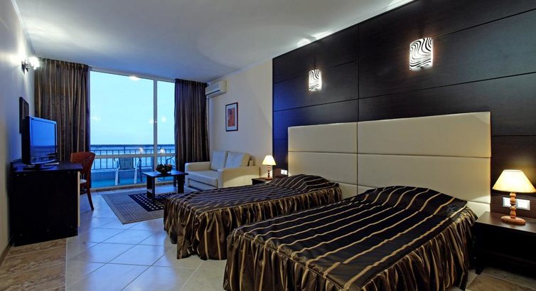 Отличная четверка на Золотых песках на питании AL. Разнообразная вкусная кухня (мясо четырех видом, овощи, фрукты (по сезону), сладости местного производства, напитки в неограниченном количестве Очень внимательный и вежливый русскоговорящий персонал. Чистые просторные номерах с видом на море, сантехника в хорошем состоянии. Рекомендую как для молодых пар, так и для семейного отдыха.