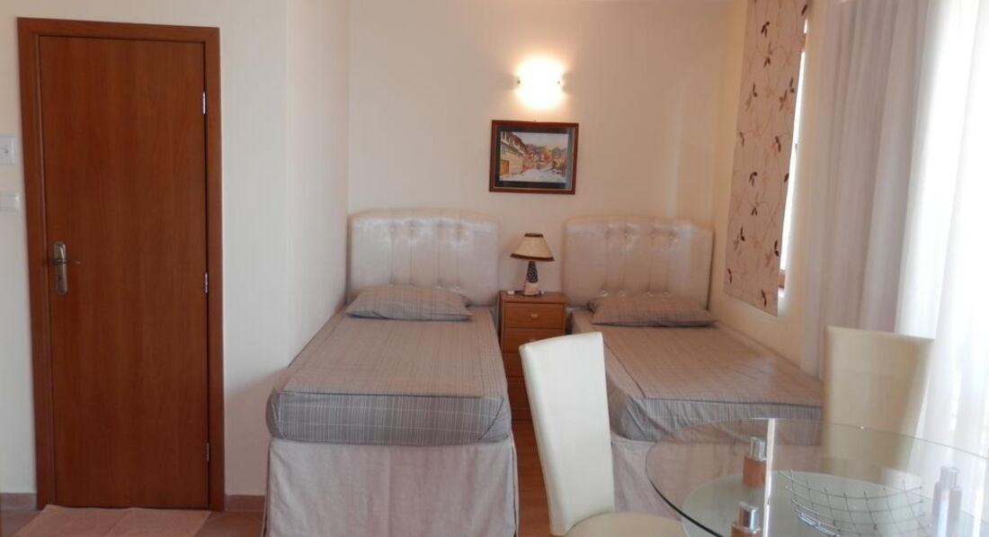 Отдыхали в июле 2016года компанией(трое взрослых и пятеро взрослых детей).Начну с того,что все номера в отеле разного стандарта.У нас было четыре двухместных номера.Сначала нам дали три номера на цокольном этаже. Жить там опасно для здоровья:душевой кабинки нет,когда купаешься,вода везде и потом нечем ее убрать,из-за этого воняет сыростью и плесенью,вход в эти номера отдельный-не через рецепцию,ночью заходи кто хочет.Балкон одного из номеров выходит на ресторан.После долгих переговоров нас переселили наверх.У моих детей был 101номер -там вообще нет балкона,душ был сломан,не было щетки для унитаза.Еще у нас был 207 и 307 номера:ванна в них такая,что я при весе 58кг с трудом протискивалась между раковиной и унитазом.С балкона -вид на соседней отель.Только в 202 номере был вид на море и большая ванна.За вид на море вас попросят доплатить 2 евро с человека в сутки.В номеран не убирают.Уборка заключается в выносе мусора.У нас в одном номере 12 ночей не меняли белье.Мой сын ходил на рецепцию за туалетной бумагой.Но все выше описанное не сравнится с тем,что мы не спали ночами.Внизу через дорогу находится ночной клуб Revue.Дискотека начинается в 12 и заканчивается между 4.00и 5.30.Я выучила всех болгарских исполнителей.Вы не сможете спать.А когда заканчивается дискотека ,думаешь вздремнуть,не тут то было,приезжает мусоровоз.В первый дннь я думала,что рухнул наш отель,звук непередаваемый.