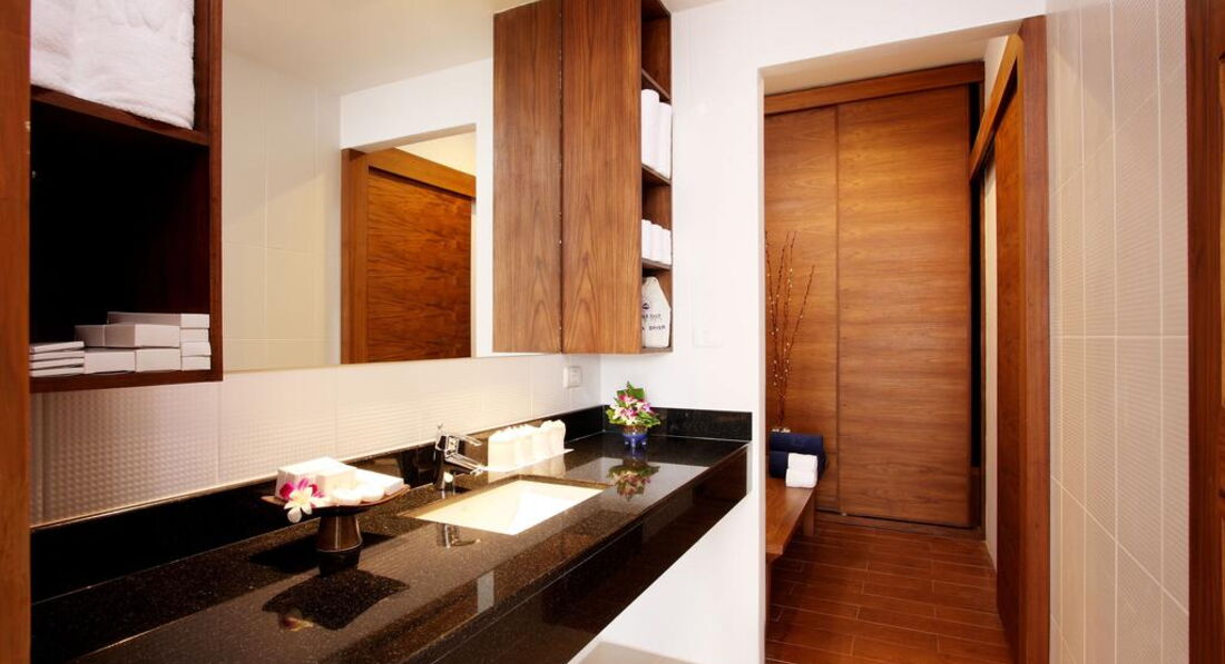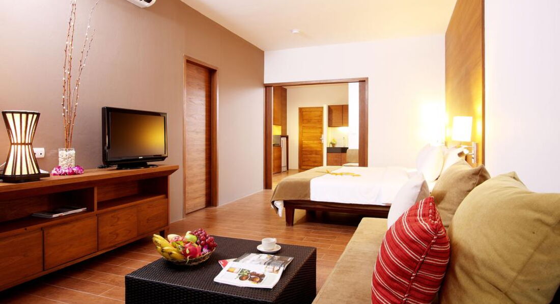 1. Номер на 2 этаже, балкон выходит во внутренний двор к пруду с лотосами, справа видно море. Интерьер не новый (более 5 лет), но аккуратный, продуманный (с национальным колоритом, ничего лишнего). Вся техника работала, удобная большая кровать.