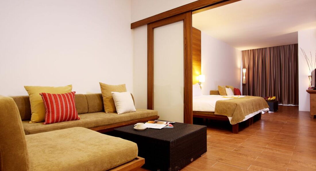 - Расселение быстрое. На мою просьбу ( замечу с улыбкой на лице) не давать номер на первом этаже, мне с радостью сообщили, что вместо стандартного делюкса, забронированного нами, нам дают еще лучший Джуниор Сьют.