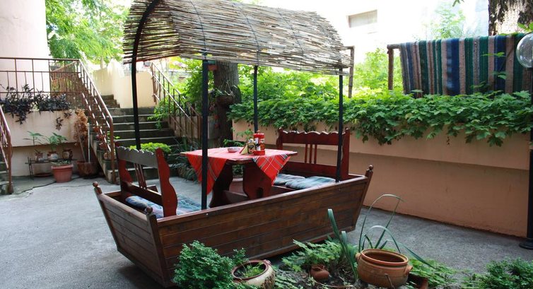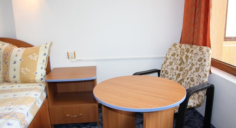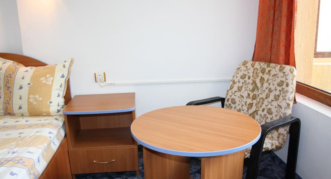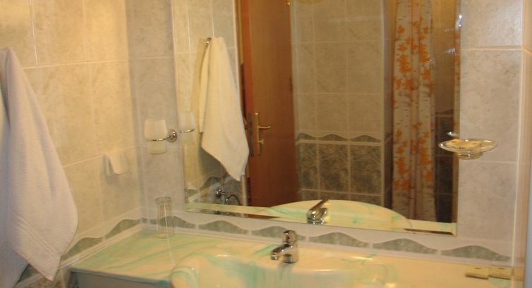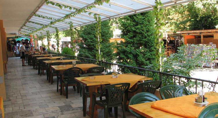 Питание. Вот на него рассчитывать не стоит. У нас были только завтраки. В еде мы очень непритязательные. Но даже нам не понравилось. Можно есть каждое утро: вареные яйца, брынза, огурцы, помидоры, мюсли, йогурт, выпечка, иногда сосиски и колбаска типа салями, иногда рыбные консервы. Также дают то, что кушать не смогли (нам было ну совсем несъедобно): сыр, вареные колбасы несколько видов, паштеты. Сходили 1 раз на ужин. 14 левов на человека, при этом все напитки за отдельную стоимость. Соевые котлеты и соевые отбивные. Несколько видов гарниров, закуски. За эту цену в кафе можно покушать намного вкуснее. Кстати, кафе "Русская кухня" как раз от ресторана отеля. Но кормят в кафе совсем не так, как в ресторане - намного вкуснее. Мы облюбовали кафе "Кривая Липа" в 3 минутах ходьбы от отеля. Недорого, вкусно, но обслуживают медленно. Порции очень большие, нам одной порции на двоих было предостаточно (1 порция блюда в среднем 350-500 гр.).