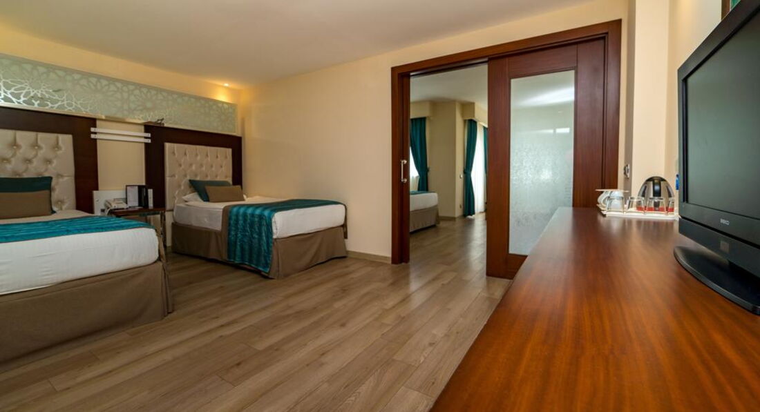 18 трикімнатних family suite (все з видом на море, хол, дві спальні з дверима, макс. 4+1 чол., 33-53 м2);