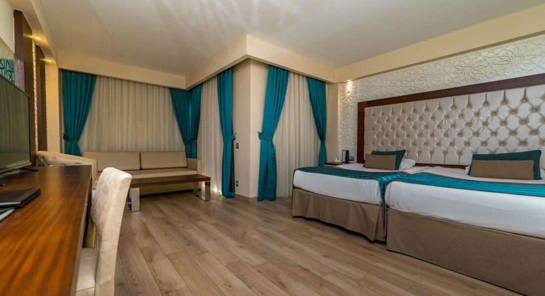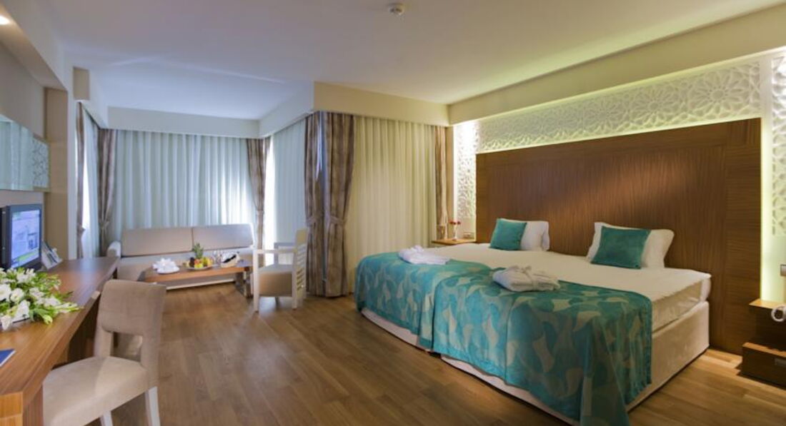 Один з найкращих і широких пляжів у Сіді. Комфортабельні номери, активна анімація та спортивні програми для дітей та дорослих, аквапарк, дискотека. Особливою популярністю користуються номери Beach House із прямим виходом на пляж. Рекомендуємо для активного сімейного відпочинку.