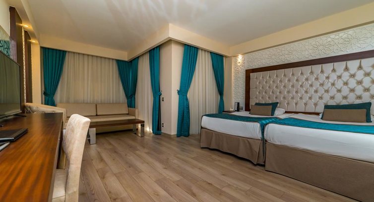 Ни когда не писала отзывы об отелях, но тут молчать нет сил. Все началось с заселения, приехали семьей в отель поздно ночью. Заказывали фэмели рум, нас заселили на 1 этаж, на который нужно спускаться по лестнице, у нас двойняшки и когда пришли, у меня глаза округлились( лифта нет). Пришлось брать детей спускаться вниз и по ступенькам тащить коляску. Приятного мало. На второй только день нас переселили. Сам отель просто устал .. очень все пошарпаное, замызганное. Цену которую мы заплатили конечно не стоит. Еда , было разнообразие , в принципе нормально, но когда давали что то вкусное очереди как в совдепе за колбасой. Конечно ощущение столовки не покидало, со сталов не убирали, обслуживание это вообще большой минус отеля, 2 раза подряд не убирали номер, 3 детей преставьте и 2 дня не убирают номер что там творилось, песок был везде, девочка чисто физически не успевала до 4 убрать все номера. В номере из под ванной стояла лужа после приема душа. Сама территория конечно большая , есть где погулять с коляской , проминад шикарный, пляж тоже шикарный, для детей пологий заход в море, море чистое, конечно лежаки нужно было занимать с утречка, но наверное это проблема всех отелей в Турции . Ну и конечно же на 6 день 2 детей подхватили вирус коксаки, в легкую отдых был попорчен.