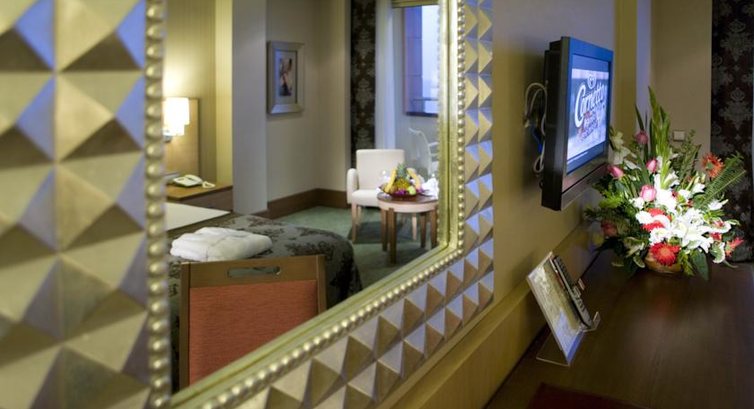 1 трикімнатний presidential suite (хол, 2 спальні з дверима, 5 ТV, кухня, 2 міні-бари, 2 ванні, джакузі, тераса, знаходяться на останньому поверсі, макс. 10 чол., 542 м2).