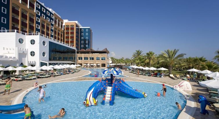 Прелесный красивейший отель,шикарный пляж,шикарная огромная территория!Отличное питание и напитки!Отель для отдыха с детьми:детей много и очень шумно,и самое неприятное многие заболевают вирусом коксаки.Самое интересное гиды и турецие врачи говорят ,что это ангина и не ставят диагноз коксаки,дабы не напугать отдыхающих.Наша семья не исключение.Летели обратно весь самолет с больными детьми !Переболели 2 детей в отеле,муж 3 день мучается с сыпью,кожа на пальцах облазет.Так что запасайтесь лекарствами и поменьше находитесь в бассейне!