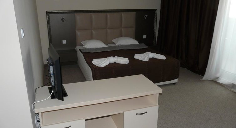 Отдыхали с 9.08 по 21.08 2015 года. Бронировали через Бук.ком Поселили в малый корпус на 3 этаже.Персонал приветливый,с уборкой тоже все нормально,завтраки как и везде.Осталось очень хорошее впечатление об отеле.Расположение к морю близкое,по дороге есть отличный ресторанчик быстрого питания Злата Дюна,там прекрасная еда и приятные хозяева.Пляж не очень,зонты натыкали рядов на 50 вверх,это не понравилось.Заход в море постепенный,мы располагались возле бара,там небольшая яма для любителей глубины.Кондиционеры работают,телевизор есть.