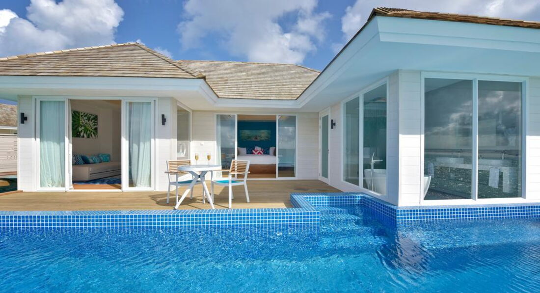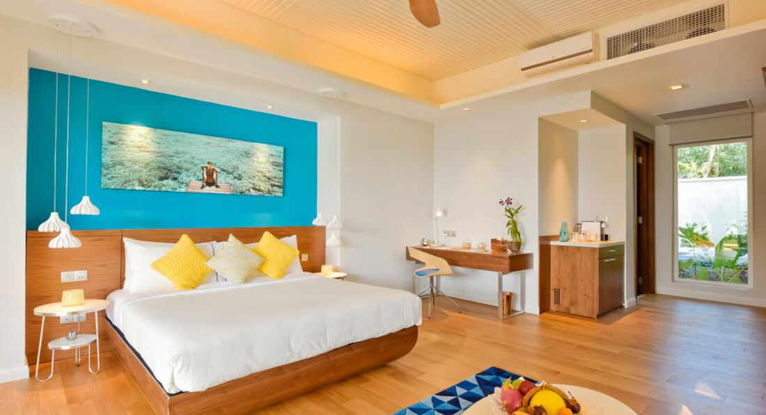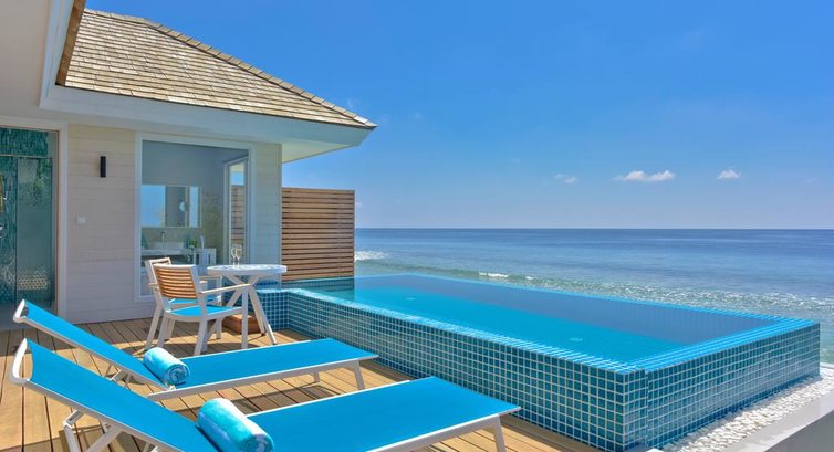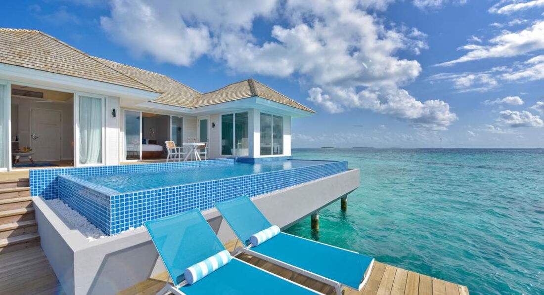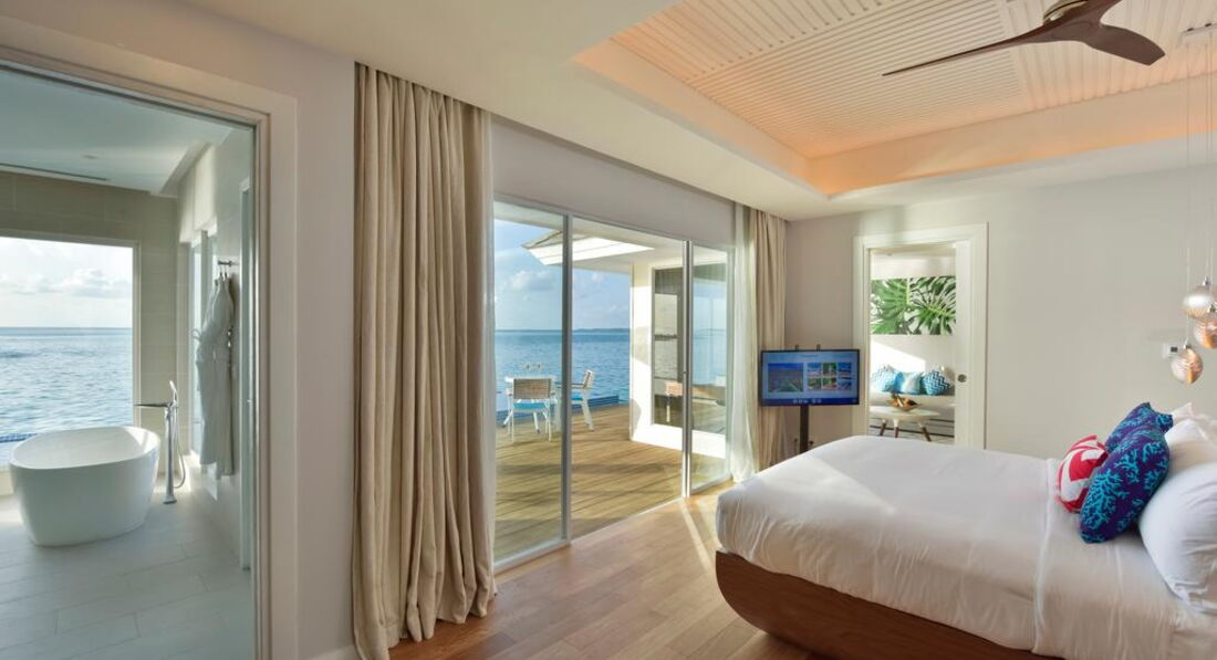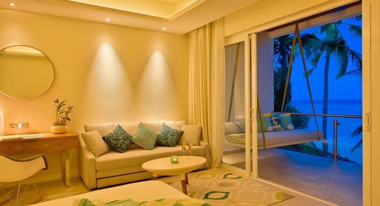 Типи номерів: 60 Sky Studio/ 72 Beach Studio (40 м2 – внутрішні приміщення, макс. 3 чи 2+2 чол.). Розташовані у двоповерховому блоці на 4 номери вздовж пляжної лінії. Спальня з ліжком king-size, зона відпочинку з диваном, вбиральня, ванна кімната з душем, балкон/тераса (15 м2) з кушеткою та обіднім столиком. 6 Family Sky Studio (80 м2 – внутрішні приміщення/30 м2 – зовнішні, макс. 6 чи 4+4 чол.). Є 2 об'єднаними номерами Sky Studio. Ідеальні для розміщення сімей чи дружніх компаній. 30 Beach Villa with Jacuzzi (55 м2 – внутрішні приміщення/ 42 м2 – зовнішні, макс. 3 або 2+2 особи). Берегові вілли з видом на океан. Спальня з ліжком king-size, зона відпочинку з диваном, вбиральня, частково відкрита ванна кімната з ванною та душем, кушетка для відпочинку, джакузі, тераса з обіднім столиком. 20 Beach Pool Villa with Jacuzzi (55 м2 – внутрішні приміщення/ 70 м2 – зовнішні, макс. 3 або 2+2 особи). За наповненням є ідентичні номери Beach Villa with Jacuzzi, але додатково мають приватний басейн на терасі. 30 Aqua Villa (48 м2 – внутрішні приміщення/ 25 м2 – зовнішні, макс. 3 чи 2+2 чол.). Водні вілли із прямим спуском у воду. Спальня з ліжком king-size, зона відпочинку з диваном, вбиральня, ванна кімната з ванною та душем, обідня зона на відкритому повітрі, тераса з шезлонгами. 30 Aqua Villa with Jacuzzi (48 м2 – внутрішні приміщення/ 25 м2 – зовнішні, макс. 3 або 2+2 чол.). Водні вілли із прямим спуском у воду. За наповненням ідентичні номерам Aqua Villa, але додатково мають джакузі на вулиці. 20 Aqua Pool Villa (60 м2 – внутрішні приміщення/ 30 м2 – зовнішні, макс. 3 або 2+2 чол.). Просторі водяні вілли з прямим спуском у воду. За наповненням ідентичні номерам Aqua Villa, але додатково мають приватний басейн на терасі. 2 Honeymoon Beach Pool Villa (? 55 м2 - внутрішні приміщення, макс. 2 чол.). Берегові номери з приватним басейном, ідеально підходять для молодят та романтичного відпочинку. 2 Two-Bedroom Beach Pool Villa (? 100 м2 – внутрішні приміщення, макс. 6 або 4+4 чол.). Берегові вілли з 2 спальнями та приватним басейном. Ідеально підходять для розміщення сімей чи дружніх компаній. 2 Two-Bedroom Aqua Pool Villa (? 120 м2 – внутрішні приміщення, макс. 6 чи 4+4 чол.). Водні вілли з 2 спальнями та приватним басейном на терасі. Ідеально підходять для розміщення сімей чи дружніх компаній.У номері: • ліжко розміру king-size • кондиціонер • ТБ із плоским екраном (супутникові канали) • телефон • міні-бар • сейф • фен • прибирання номера – щодня