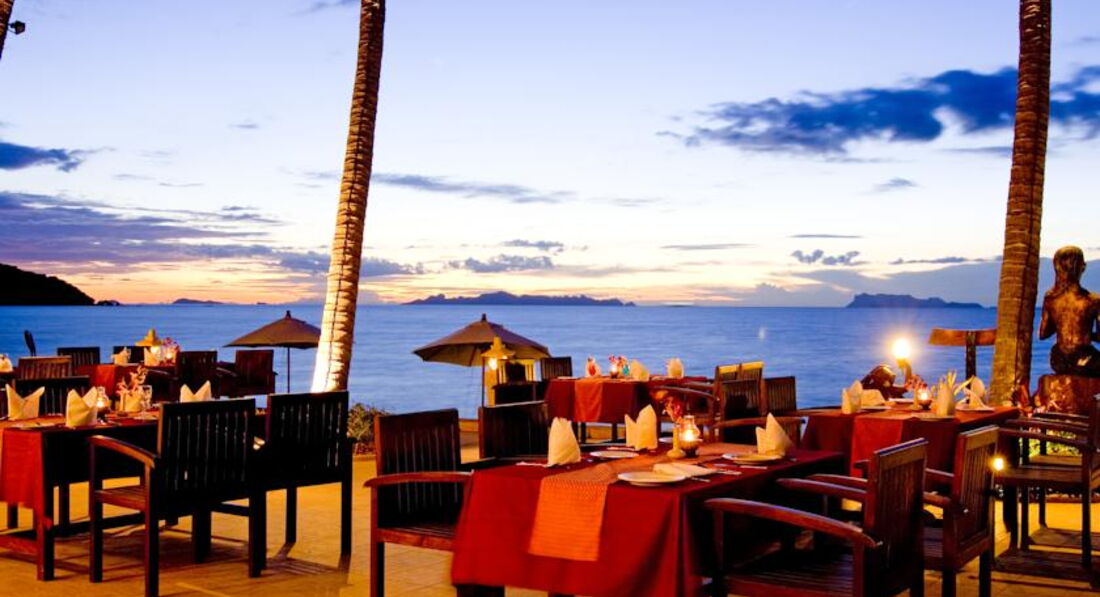 Завтраки нормальные. На ужин в отельный ресторан ходили первые два дня, готовят долго, забывают часть заказа, как то не комфортно. Через дорогу от ресепшен пара дешёвых забегаловок, сходили в одну, не очень понравилось. Слева кафе с европейским меню, а хотелось местной кухни. Чуть дальше на право кафе Mango Tree с гордой вывеской ресторан, вкусно, внимательное обслуживание, привычная музыка, уже во второе посещение чувствуешь себя как дома. Если пройти по дороге направо ещё минут 7, будет ресторан Five islands, до него можно дойти и по пляжу. Встречают человека три, белую салфетку кладут на колени, белые скатерти, шум волн, приятная музыка, свечи в стеклянных сосудах, красивый интерьер, часть столиков под открытым небом в 10 метрах от воды. Готовят очень вкусно, весь процесс можно увидеть, кухня не отделена. Порции большие и красиво оформлены, официанты отлично знают меню и английский, некоторые блюда на двоих, часть меню которого не встречали ни у кого в округе, видимо там не хотят заморочек со сложными рецептами, но счета 2000-2500 бат за ужин на двоих с алкоголем.