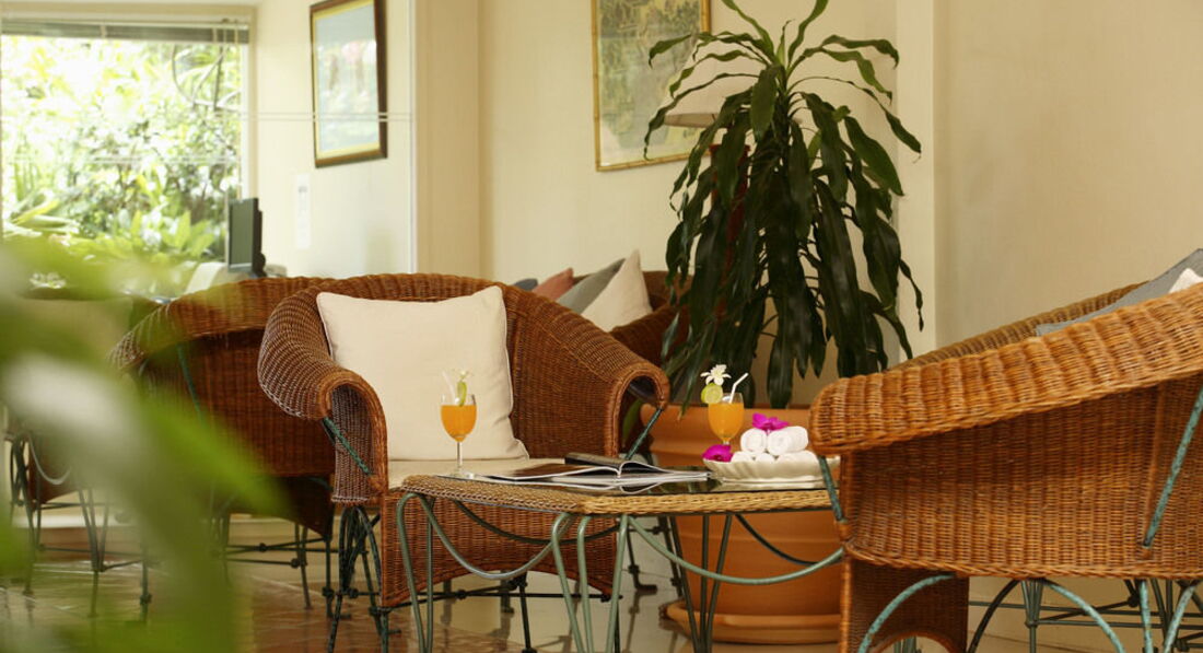 Отель находится на самой юго-восточной оконечности острова, достаточно далеко от аэропорта и основных развлечений, поэтому его и выбрали. Встретили и привезли не групповым трансфером, как было заказано, а персонально, на джипе. В отеле встретили улыбками, прохладной водой и влажными полотенцами. Сам отель с первого взгляда произвел хорошее впечатление-чисто, ухоженно, все в зелени.Попросили номер "повыше" из-за насекомых, которых кстати, ни разу в отеле не видели. Заселили в течение 10 минут, что очень приятно после 10 часов перелета.Причем номер дали, как и просили, повыше, на 4 этаже и не студию, как было заказано, а номер с отдельной спальней, который стоит на порядок дороже, но никаких доплат ни при заселении, ни при выезде с нас не взяли. Депозит не брали тоже.