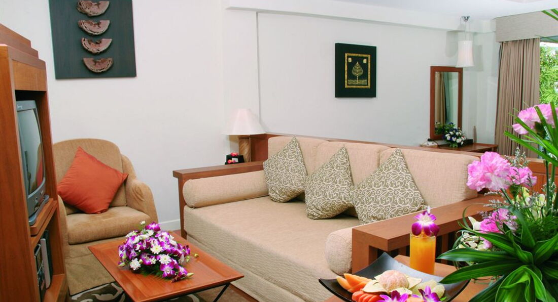 Отель очень хорош,несмотря на то что это 3*,убирались каждый день,полотенца меняют если бросить на пол в остальных случаях нет,но это написано на памятке в номере так что без претензий))территория небольшая,в основном переходы от одного корпуса к другому,выхода на пляж прямого нет,но курсируют автобусы очень часто,при этом дорога на пляж это подъем и спуск с горы))то бишь недалеко)кормят вкусно,европейский набор:булочки,фрукты,сосиски и тд..на пляже беспл лежаки и полотенца,песок белый море чуть мутновато но все равно приятно,обязательно стоит ознакомится с расписанием приливов..бывает что полдня его ждешь чтоб поплавать,во время отлива бродишь по колено)вокруг отеля много кафешек,покушать можно везде,тайцы приветливый народ но по-англ мало кто понятно разговаривает)все можно объяснить на пальцах..рядом с отелем находится Пхукет Аквариум,небольшой но от нечего делать сходить можно..конечно место тихое,семейное по большей части,но когда хочется веселиться ночами лишь изредка то вполне подойдет)короче рекомендую!