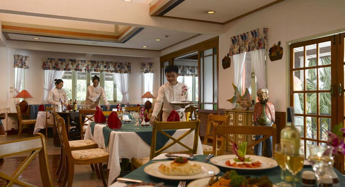 О питании.В нашем отеле были просто изумительные завтраки!Не каким-то изыском и фантазией,а богатством компонентов-4 вида сосисоидов\качество очень высокое\,корейка,ветчина,острые тайские колбасенки,два вида сыра.весь комплект сухих американских завтраков,3 вида йогуртов,изюм,вялен.фрукты,сложные омлеты и 2-3 вида китайской пищи...Всегда фруктовый салатик и нарезка ананаса,дыни,арбузецкого,и памело....Свежайшая зелень и всякая поливалка к ней...На первый взгляд все 2 недели ничего не менялось,но если включить фантазию и начать формировать компоненты в любом фантазийном порядке,но очень многого можно наколдовать вкусненького.А еще есть одна военная тайна в отеле-на 1-м этаже левого корпуса есть комната отдыха,где стоит кофемейкер с 2-3 видами класснейших печенюшек!Вот так вот куснешь перед ужином на полдник пару тарелочек печенья и жизнь приобретает совсем другой оттенок!И после прихода с жары всегда стоит кувшинчик с ледяной водицей-берегите горло!И вообще-при такой спокойной жизни в отеле совсем не надо вбрасывать в себя море ккал.Зачем?На ужин рекомендую ресторанчик возле отельного маркета, весь в красном дереве...Там относительно реальные цены и просто очень вкусно....В морепродуктах при отеле тоже разик столовался....Просто отлично,но стоил мне ужин в 830 бат,а это уже перебор!Ездить можно и на гору-там есть несколько ресторанчиков.Вид-просто песня.но в плане кухни,то предыдущий в отзыве ресторанчик куда кулинарнее...Это слово можно употреблять только к тайской кухне.