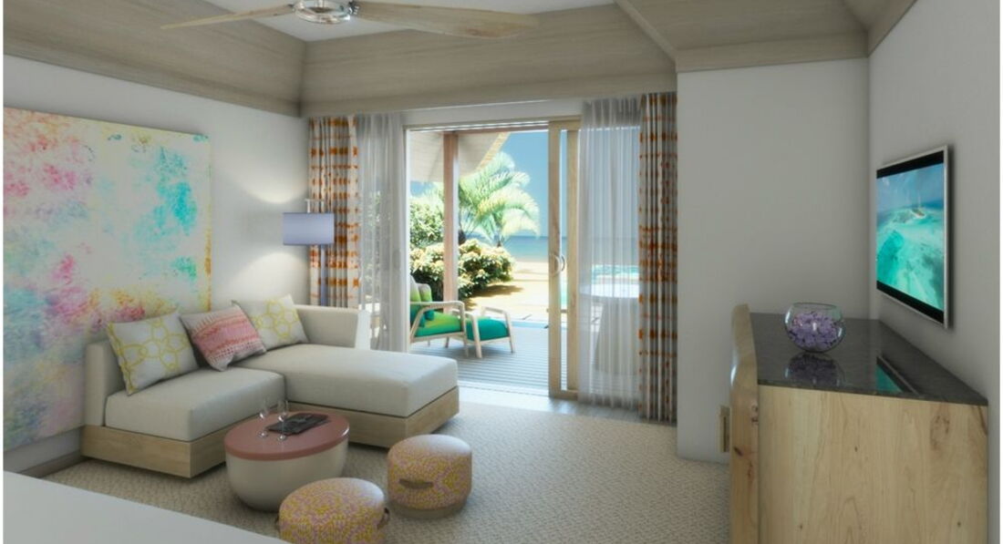 2 Grand Beach Villa (280 м2, макс. 4 або 4+2 особи). Берегові вілли, розташовані в східній частині острова, з видом на схід: вітальня з зоною їдальні з панорамними вікнами, 2 спальні (одна з ліжком king-size, інша з twin), 2 ванні кімнати (одна з джакузі, інша з душем на відкритому повітрі). повітря), тераса з джакузі, вихід на пляж.