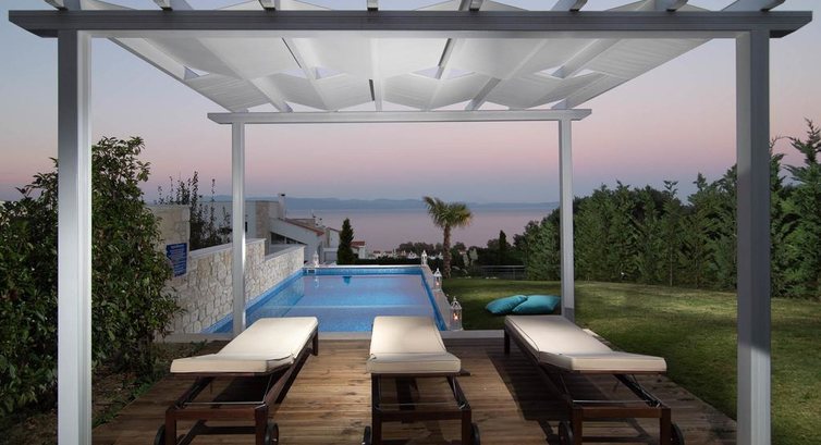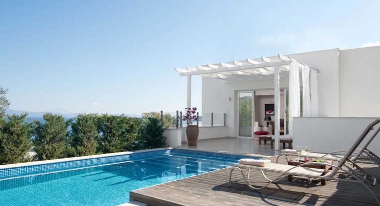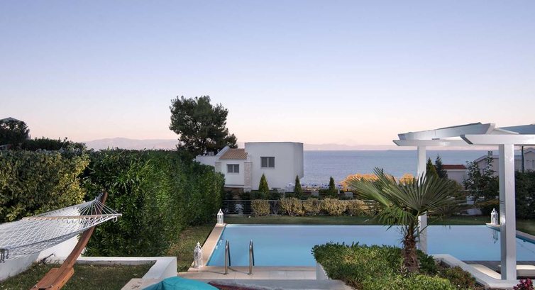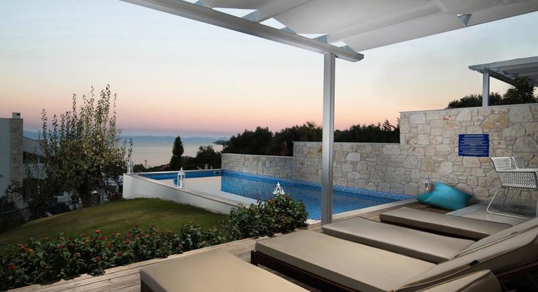 Типи номерів: Suite 1 Bedroom (спальня та вітальня з дверима, обладнана кухня, осн. ліжко – двоспальне, вихід на терасу з індивідуальним басейном (40 м2), макс. 2 чол., 55 м2 та 150 м2 прилеглої території); Suite 2 Bedroom (2 спальні, 2 ванні кімнати, вітальня з кухнею, осн. ліжко - двоспальне, дод. - 2 односпальні ліжка, вихід на терасу з індивідуальним басейном (3,5 х 8 м) з дитячою секцією (3 х 2 м) ), макс.4 чол., 75 - 85 м2 і 150 - 200 м2 прилеглої території); Exclusive Suite 3 Bedroom (3 спальні, 2 ванні кімнати, вітальня з кухнею, осн. ліжко - двоспальне, дод. - 3 односпальні ліжка, вихід на терасу з індивідуальним басейном (4 х 8 м) з дитячою секцією (3 х 2 м) , максимум 6 чол., 110 м2 та 150 м2 прилеглої території); Exclusive Fitness 3 Bedroom Suite (дворівнева вілла; нижній рівень - вітальня з кухнею та обідньою зоною, гостьова ванна кімната, тренажерний зал; верхній рівень - 3 спальні, 2 ванні кімнати, вихід на терасу з індивідуальним басейном (3,5 х 8) з дитячою секцією (3,5х3 м), макс.6 чол., 110 м2 та 150 м2 прилеглої території); Junior Suite Sharing Pool (дворівневий номер, 2 спальні, 2 ванні кімнати та вітальня з кухнею та обідньою зоною, вихід до загального басейну на 4 номери, осн. ліжко - двоспальне, додаткові - 2 односпальні, макс. 4 чол., 55- 70 м2 та 20-40 м прилеглої території); Villa Alkyon (3 bedrooms) (двоповерхова вілла; перший поверх - вітальня з кухнею та обідньою зоною, спальня та ванна кімната, вихід на обладнану терасу з зоною відпочинку та індивідуальним басейном (3,5х8 м); другий поверх - 2 спальні та ванна кімната , осн.ліжко - двоспальне, додаткове - двоспальне та односпальне ліжка, макс.6 чол., 115 м2 і 350 м2 прилеглої території); Villa Theano (5 bedrooms) (триповерхова вілла; перший поверх - 4 спальні, 2 ванні кімнати; другий поверх - вітальня з кухнею та обідньою зоною, ванна, обладнана тераса з зоною відпочинку та індивідуальним басейном (4х12 м) з дитячою секцією; третій поверх) - спальня та ванна кімната, основні ліжко - двоспальне, додаткове ліжко - двоспальне та односпальне ліжко, макс.10 чол., 200 м2 і 700 м2 прилеглої території); Villa Alkistis (2 bedrooms) (двоповерхова вілла; перший поверх - гостьова ванна кімната, вітальня з кухнею та обідньою зоною; верхній рівень - 2 спальні та ванна кімната, осн. ліжко - двоспальне, додаткові - 2 односпальні ліжка, вихід на терасу з індивідуальним басейном (4 X 7.5), макс.4 чол., 85 м2 та 150 м2 прилеглої території); Villa Iolis (3 bedrooms) (триповерхова вілла; перший поверх - 2 спальні, ванна кімната; другий поверх - вітальня з кухнею та обідньою зоною, ванна, обладнана тераса із зоною відпочинку та індивідуальним басейном (3,5х8 м); третій поверх - спальня , максимум 6 чол., 115 м2 та 350 м2 прилеглої території); Villa Ermioni (3 bedrooms) (триповерхова вілла; перший поверх - 2 спальні, ванна кімната; другий поверх - вітальня з кухнею та обідньою зоною, ванна, обладнана тераса з зоною відпочинку та індивідуальним басейном (3,5х8 м); третій поверх - спальня , максимум 6 чол., 115 м2 та 350 м2 прилеглої території); Villa Iliachtis (3 bedrooms) (двоповерхова вілла; перший поверх - вітальня з кухнею та обідньою зоною, спальня та ванна кімната, вихід на обладнану терасу з зоною відпочинку та індивідуальним басейном (4.5 х 8.5 м); другий поверх - 2 спальні та ванна кімната) , осн.ліжко - двоспальне, додаткове - двоспальне та односпальне ліжка, макс.6 чол., 115 м2 і 450 м2 прилеглої території); Villa Ekavi (4 bedrooms) (триповерхова вілла; перший поверх - 3 спальні, ванна кімната; другий поверх - вітальня з кухнею та обідньою зоною, ванна кімната, обладнана тераса із з
