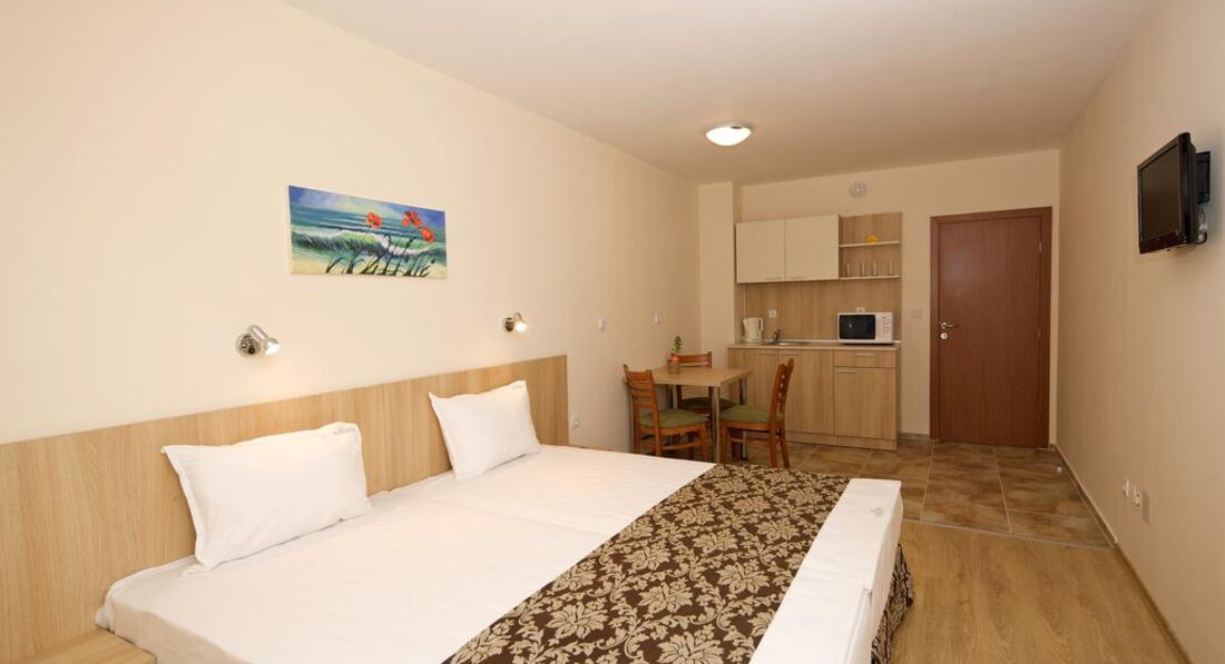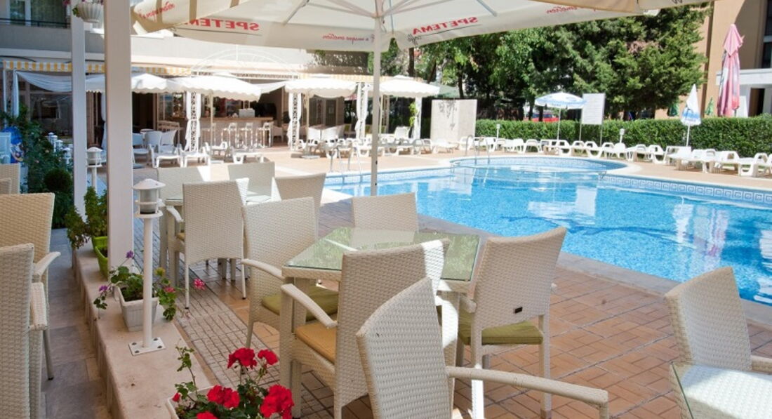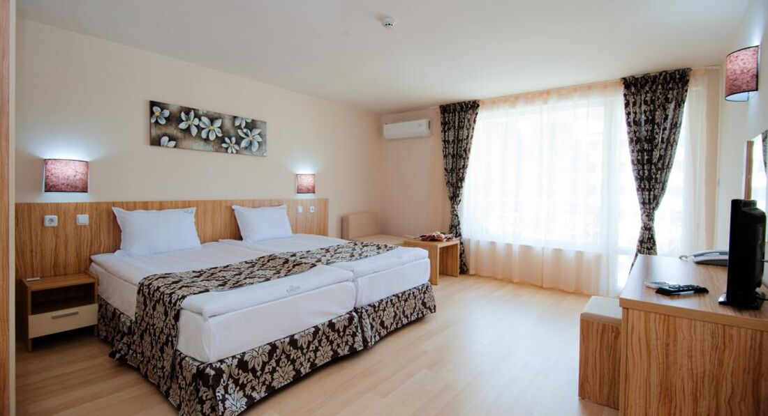 Недалёко от моря-+, минусы: все везде курят, еда однообразна, невкусна, особенно завтраки, простынь в пятнах, очень много хлора в воде бассейна и он очень холодный. Не советую отель и вообще Болгарию, лучше уж Турция, а ещё лучше Грузия!