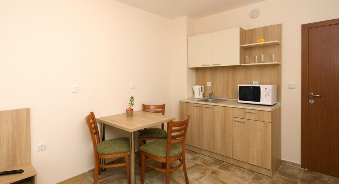 В Болгарии отдыхала за последние 12 лет в 5 раз. В отель Карлово поехали по рекомендации турфирмы, за что ее сотрудникам отдельное большое спасибо. Прилетали мы утром и в отель приехали за долго до положенного часа заселения, но... УРА! номер к нашему приезду был готов и сотрудник рецепшен Евгений нас проводил в номер. Мы жили в корпусе аппартаментов с отдельным входом в корпус с улицы. Евгений нам все показал в номере, ответил на все вопросы. Номер состоит из 2- х спрален , небольшой кухни с микроволновкой, холодильником, электрочайником и минимальным набором посуды. За 2 недели пребывания в номере убирались каждый день, белье поменяли 3 раза, столько же раз меняли полотенца. Номер чистый, просторный.