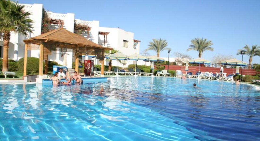 Ну что начнем,отдыхали мы с 14.08.2015 года с братом, по совету тур-оператора выбор пал на данный отель, приехав в отель нас заселили в 14:00, так и было предложили нам номер на первом этаже, номер если не ошибаюсь 126,или 136, не важно зайдя в номер, мы опупели эта так мягко сказать, номер был не убран, жутко пахло не понятно чем мебель была чем то облита грязная, далее открыв дверь на балкон, мы совсем ахренели перед нами открылись джунгли с горой мусора. Быстренько закрыли дверь и потопали на ресепшен с вопросом что за х....я, нам пообещали номер поменять на втором этаже 235, ок ждали 20-25 минут, зайдя в номер картина была лучше уже, да и кто муже отель очень дико старый ремонта там не было с 90-лохматых годов. Хочется отметить уборку в номерах и смену постельного белья, приходит пареньке с бутылкой побрызгал водой по центу комнаты протер грязной тряпкой и все до свидание ))). Белье нам наверное вообще не меняли вместо белого оно было серое, ладно это мы пережили. Как говорит тур оператор пляж через дорогу ))) Да как же, через дорогу находятся отели где ни кого не пускают, а если и даже пустят то за 5,10,20 долларов, (сумма может варироваться в зависимости от куда прилетел если это Москва то 10, Америка и то больше, наблюдали сами ) Сам пляж от отеля находиться в 20-25 и минутах( если спиртовым шагом) и то нужно идти за 1001у-ночь ( это торговый городок). Приходя на пляж нужно спуститься по 150 ступенькам и предъявить браслет( в нашем сучий это было каждый день). На самом деле пляж хороший приятный вход в море, рядом есть пантон где можно нырять с маской и увидеть красивых рыбок ). На самом пляже редко так же убираются, но это терпимо. Еще в отеле есть бассейн, но он очень грязный, все покрытие из шарапаное, не приятно ходить и купаться так же , поэтому мы ходили на пляж. В целом мы преследовали цель съездить по больше по экскурсиям, уидеть саму красоту Египта не смотря на такие важные нюансы своего отдыха, своих денег. Проще говоря если вы ищите прям хороший отдых то не выбирайте этот отель, там очень много арабов, при отеле есть еще лорек, так на 1 доллар там дороже чем в МЕТРО(супермаркет) лучше покупать там,тур можно купить действительно через дорогу и дешевле и без обмана. Красоту Египта действительно мы увидели, съездили на экскурсии, поплавали в море, но не хотели возвращаться туда в этот отель, так и прошел наш отпуск!