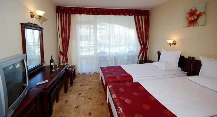 Отдыхали в июне 2012 я и дочка 5 лет. Все понравилось. Персонал мало говорит по-русски, т.к. в отеле в основном немцы, но все хорошо говорят по английски. номер хороший, убирают хорошо (чаевых не оставляла). Брали только завтраки - не оч. большой выбор, из фруктов только киви, яблоки, бананы, каш нет, но выбрать можно: нарезка, хлопья, выпечка. На завтрак лучше идти с самого раннего утра, позже может не хватить места и фруктов. Деньги и паспорта хранили в чемодане-ничего не пропало. Холодильник в номере был платный-не пользовались, еду и воду в номер проносили - никто ничего не говорил (недалеко дешевый супер-маркет Пенни). Расположен отель хорошо - автопаровозики до Несебра и Солнечного берега, недалеко небольшой аквапарк в отеле Котва. Место тихое, нет шумных дискотек рядом. Море мелкое. Море рядом, есть бесплатный пляж, чистый.