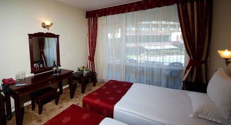 Отдыхали большой семьей в конце июня-начале июля 2013г. Первое впечатление об отеле хорошее, приличный холл, диваны, золото, зеркала... Но оно было испорчено тем, что лицезреть всю эту красоту нам пришлось с 5ч утра до 14ч дня (9 часов плюс перелет 2,5ч и переезд 3ч), т.к. мы прилетели в Болгарию глубокой ночью, а заселение только после 14.00!!! Конечно, это не проблема отеля, но это проявление отвратительного отношения к гостям. Представьте, 9 измотанных человек с маленькими детьми и постарше, с пожилой женщиной спали на диванах в холле и лежаках у бассейна в ожидании номеров. Мы предлагали доплату, просили разместить нас пораньше - ответ один: всички стаи заняты. При этом ни один отдыхающий за это время не выехал! И в 14.00 нам давать номера тоже не спешили, пока мы, измученные ожиданием, не стали скандалить и требовать то, что положено. Я читала об этом в других отзывах, но всё-равно не ожидала такого отношения! А дело, наверное, в том, что не было заказанных даблов, и отель может быть ждал, что мы как-то перекантуемся денек-другой, пока они освободятся?! Итог: вместо оплаченных 1 апартаментов и 3 даблов нам дали 1 убитые апартаменты без ремонта (правда в 12.00, а не в 14.00!) и ещё 3 шикарных апарта.