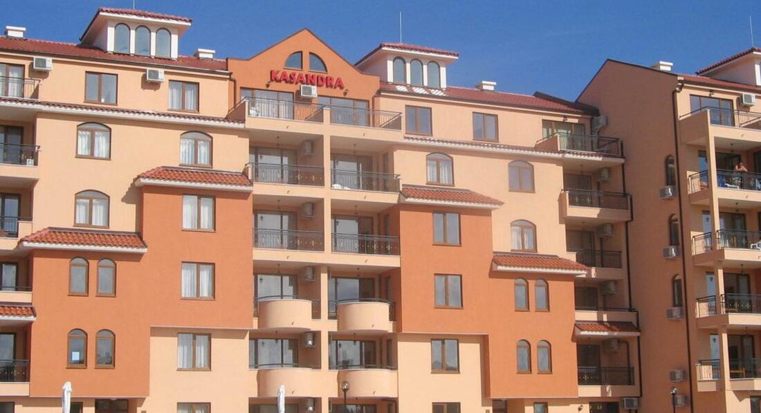 Апарт отель Касандра расположен в Солнечный Берег, в 350 м от моря, недалеко от апарт отелей Эфир и Хепи. Комплекс состоится из четырёх секций. На территории отеля есть различная инфраструктура: магазин, кафе-ресторан, бассейн для детей, бассейн для взрослых, парковка. Каждые апартаменты оборудованы посудой, холодильником и всем необходимым для самостоятельного приготовления еды. В каждом номере есть кондиционер, удобный раскладной диван. Во всех апартаментах есть телефон, кабельное телевидение и Интернет.
