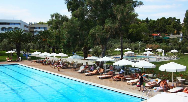 Популярний готель із великою зеленою територією на березі моря. Вибір комфортних номерів, ресторан, таверна, бари, великий басейн, інтернет, спорт, дитячий клуб.