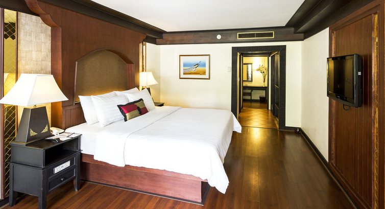 Отдыхали в этом отеле 15 ночей с конца апреля по начало мая 2017 года. Так как наш самолет регулярный рейс S7 из Новосибирска, прилетал очень рано утром, то в отеле мы были уже в 6 утра а заселение только в обед, брали на одну ночь специально больше, чтоб нас сразу рано утром разместили и мы могли отоспаться после дороги. Проживание в отеле брали у туроператора тезтур, только проживание в отеле завтрак и ужин, номер обычный (не с видом на море). Сначала нас разместили на 3 этаже с видом на дорогу и местный департамент, шумно очень, поздно вечером доносится музыка из близлежащих кафе, попросили номер поменять, поменяли нам его только через 2 суток, дали на втором этаже с видом на зеленую территорию отеля и даже немного моря было видно. Завтраки в отеле скромнее конечно, чем в Турции все включено, но ем не менее голодным не останешься. Мы летали с двумя маленькими детьми 4 года и год, на завтрак была каша молочная, яйца, сосиски, выпечка, омлет, оладьи, сыр (пишу то, чем кормила детей, т.к. для мам это важно), в магазине брали младшему молоко, детское питание есть в небольшом магазинчике у пляжа (это если выходить через пляжный ресторан отеля за территорию и направо). Но тайское детское питание пришлось моему ребенку не по вкусу, так что 10 банок пюре тыквенног гербер и 10 банок мяса тема мы съели за отпуск, еще брала пару каш разводных молочных (пригодились). Обедать ходили сначала первые 2-3 дня в кафе через дорогу от отеля, ценник в принципе такой же, как если бы мы кушали в ресторане пляжном в отеле. Ели там до тех пор, пока после обеда мне и старшему сыну резко не стало плохо. сначала грешила на это кафе. Тошнота, рвота, боль в животе, рвота очень сильная, прям всю ночь, диарея. Ездила с сыном по страховке к врачу, дали антибиотики и таблетки от рвоты и поноса. Потом, пообщавшись с народом в отеле, стало ясно, что "блюют" многие, даже взрослые, у которых нет детей. и семьи с детьми тоже переболели, симптомы те же. Потом через неделю младший заболел ребенок, рвало всю ночь и муж тоже "сдался". Вообщем переболели все, кишечная инфекция (ротовирус). Старший сын потом по второму кругу заболел уже перед вылетом, прилетели домой, сдали кровь - вирусная кишечная инфекция, чуть в инфекционку не загремели, пили энтерол. В очередной раз убедилась, что с маленькими детьми лучше сидеть на попе смирно дома, наелись антибиотиков до отвала за две недели-оздоровились называется. Ладно, сори, дальше про отель!)) Ужин очень хорош в отеле, разнообразные кухни каждый день недели, очень понравились морепродукты, бананы в кляре, мясо всякое есть на любой вкус. Фрукты есть всегда и десерты сладкие. Мы не пожалели вообщем, что ужины взяли, обеды бы тоже надо было взять. После того, как начали болеть, стали обедать в ресторане отеля у пляжа. В апреле жарко, удобно очень, что отель прям на берегу, далеко никуда по жаре не нужно ходить. В номере есть все необходимое, холодильник, чайник, чайные принадлежности, мыльно-рыльные принадлежности. Воду пили только покупную, каждый день по бутылочки на человека оставляют в номере питьевую воду, но на нашу немаленькую семью мы постоянно докупали в магазине упаковками. Аптеки, магазинчики, фрукты все есть рядом с отелем. Детские игрушки, пляжные игрушки, круги, надувные матрасы, пляжную одежду, шляпы-все есть рядом с отелем. Очень удобное месторасположение. В басс