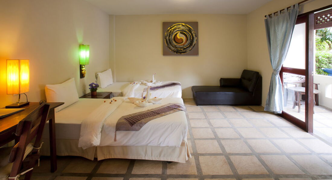Только что вернулись с отпуска, пишу правдивый отзыв.На Пхукете четвёртый раз, этот отель-худший из всех, где я была.Теперь по порядку :для меня важен качественный завтрак, по отзывам так и было, но по приезду оказалось-5 индивидуальных наборов на выбор, конечно голодными вы не останетесь, но простите путёвка обошлась мне довольно-таки дорого и хотелось бы полноценного питания ( каши, йогурта, фруктов вдоволь), а не рис, чеплашку супа с одинокой капустой и 3 кусочка арбуза...УЖАС!!!!Знала бы заранее-никогда не выбрала бы этот отель.Далее-слышимость просто капец, многие люди ведь не понимают, что у кого-то один часовой пояс с Таем, а не 4 часа...и многие в 23-00 уже спят, а в 4-00 утра тем более.НО нет, некоторым важен только свой отдых, чихать они хотели на других, так и получается, что ночами данные персонажи выходят на балконы, громко разговаривают, ржут, пьют, и даже ругаются, а другие это вынуждены слушать...ведь они же отдыхать приехали....Кондиционер спасал немного, тк работал не тихо.Телек допотопный, только один канал-НТВ.Ни чай,ни кофе не дают, только воду.Хорошо хоть меняли полотенца и бумагу давали.Плюс только один-территория, большая, красивая, птички в клетках сидят бедолаги, белки скачут, сомики-слоны плавают в пруду.Море конечно всё скомпенсировало, но в этот отель больше ни-ни.Пишу, чтобы люди знали, я там была, это-моё личное мнение.
