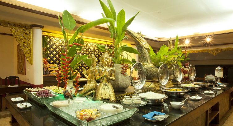 И есть платный ресторан между бассейнами,цены такие же !!, как и в любом кафе на улице.Но меню только на анг.,и выбор блюд небольшой.Работает до 17.00. За территорией(на лужайке между отелем и улицей) есть ещё один платный ресторан.Там каждый вторник,четверг с 19 часов- ужин, с большим выбором в неограниченном количестве горячих блюд и закусок.Вкусные шашлычки. Фрукты,сладости,чай,кофе.Один напиток входит в стоимость.С человека 450 Бат.Там же будет и шоу программа с традиционными танцами,музыкой,боксом...