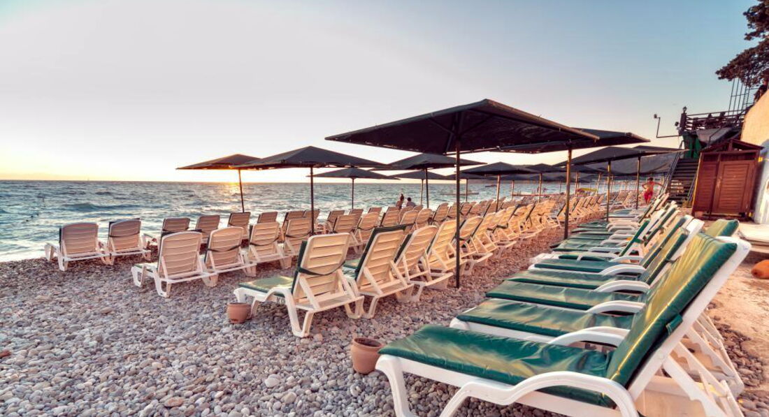 • на пляжі парасольки, шезлонги, матраци: безкоштовно