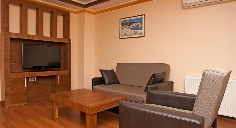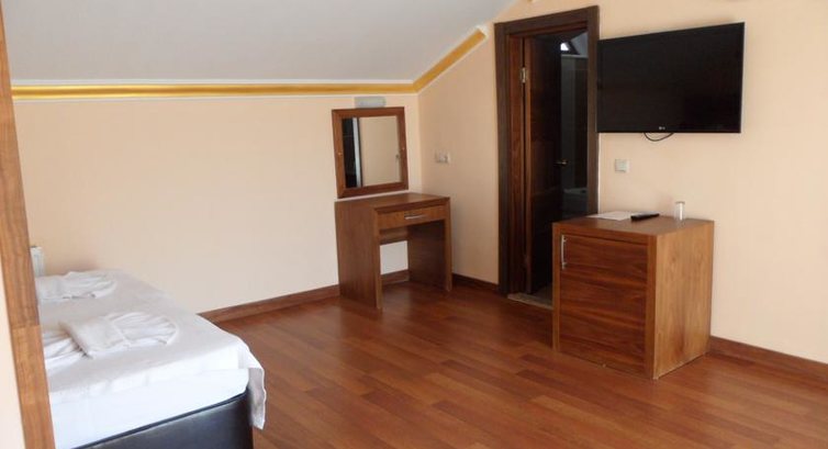 Отель новенький, маленький, чистенький. Самое классное находится он прям в центре,рядом с главной прогулочной улицей Лиман. Но в отеле и рядом всегда тишина. Есть маленький бассейн, всегда свободный, купались раза 3, очень чистенький. В отеле были в 8:00, номеров свободных не было, мы пошли сразу позавтракали, оставили чемодан на ресепшене (кстати по русски они не говорят) и пошли гулять. Заселили нас примерно в 12:00. Номер сьюит, довольно просторный, у нас был 203, балкон выходил на бассейн. В номере все прилично, чисто, мебель новая, холодильник работает, кондиционер тоже, джакузи не течет (как писали в предыдущих отзывах), вообщем все отлично с номером. Оплатили сейф на все 4 дня. Один день стоит 2 лира=1$.