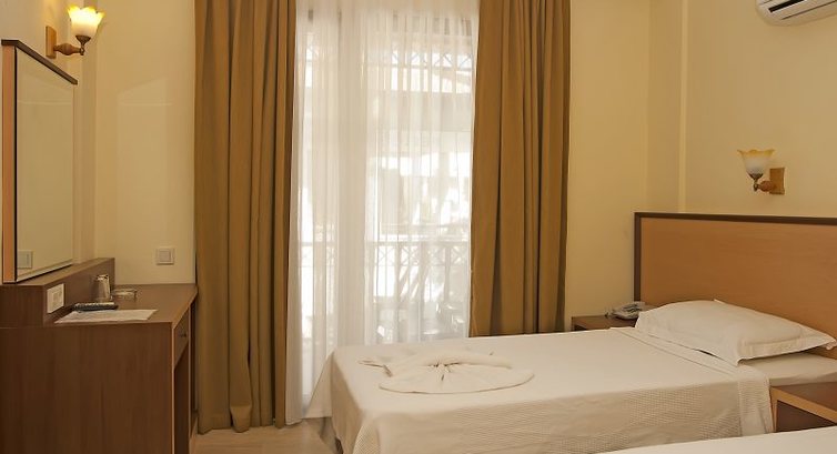 некоторые фото на сайте не соответствуют действительности. До пляжа возит переполненный платный автобус раз в тысяча лет. Автобус может и не появится, водитель имеет тенденцию резко заболевать. От пляжа очень далеко, он, кстати, общественный. Город не сказать, что шумный, большая деревня, очень напоминает ту же Гагру или Пицунду. Море чистое. Персонал мало знаком с русским и английским, всегда упрашивает сходить в их хамам. Раза 2 в день обязательно подойдут. Еду есть можно. Каждый день одно и тоже. Завтраки не о чем, ужин нормальный. В номер к друзьям ходить не разрешено, в номер приносить фрукты нельзя (борьба с муравьями, кстати их нет), много кошек и котят ( с которыми очень жестоко обращаются, при нас убили одного котенка, который пытался украсть еду). Отель 2*.