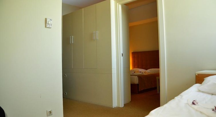 Нас отдыхало 6 человек ( 4 взрослых и 2 детей в возрасте 13 и 14 лет). При заселении возникли проблемы с номером. У нас было 2 номера ( один номер на двоих взрослых и один номер на четверых). С номером на четверых начались проблемы. Номер дали с двуспальной кроватью и одной кушеткой. Я задала вопрос, а где будут спать дети? В ответ сказали: разве номер плохой, и за то с видом на море. Пришлось идти снова на ресепшен и просить номер на четверых. После споров нам дали ключи от другого номера, как сказали – это семейный (стандартная комната поделённая шкафом с дверью, в одной стороне две кровати, а в другой кровать из кровати выезжает кушетка, получается кровать лесенкой). Один кондиционер и один телек на номер. Номер комнаты 5201, с видом на город, но шум машин не слышно. Стоит далеко от дороги.