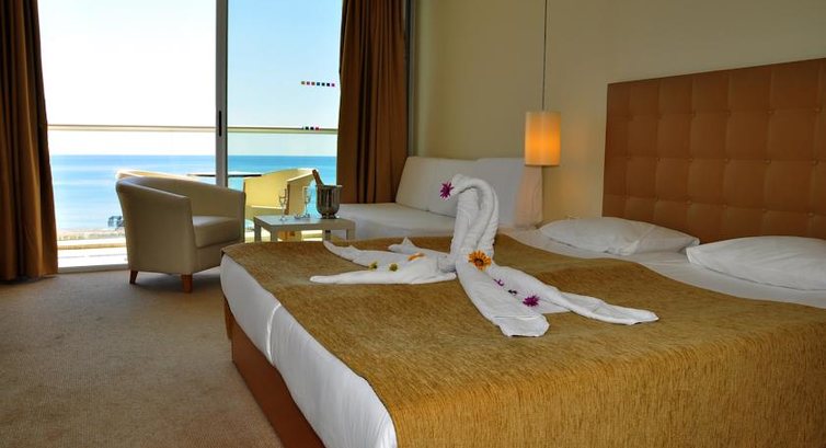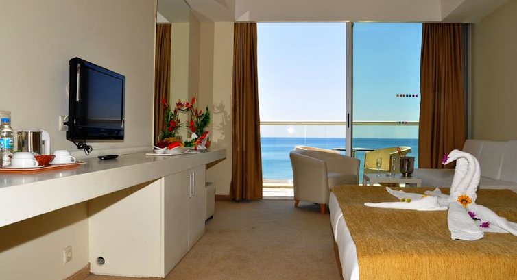 Отдыхала с 2 детьми и друзьями в июне 2017г. Всё понравилось. Есть минусы: это ковролин везде и ужасный вай фай. Номер дали с красивым видом на море, в номере было 3 кровати,так что все ОК. Если хотите номер с видом на море, то он должен быть четным, нечетные в город вид. Минибар пополняли раз в день : сок, минералка, кола. Еда в ресторане разнообразная и много вкусного, очередей как таковых нет. Единственные очереди были в лоби баре.Персонал шустрый. Море и бассейны чистые и тёплые. Отдохнули супер, но ложка дегтя это экскурсия купленная через Пегас у Сарвара - квадро сафари. Будьте внимательны. Протяженность трассы 23 км, и за сколько ты ее проедешь, столько и длится твоя экскурсия. Хотя заявленно,что 1.5 часа туда и обратно едешь на квадроциклах. Это ладно, но там работает такой турок фотограф Зекир Салтан, который вас фотографирует , затем предлагает фото за 12 долларов. Кадры понравились,купили. Дисковода у меня нет, поэтому договорились,что фото вышлет по вотсапу или на почту. Дал свою визитку. И всё ,фоток можно не ждать. Он отвечал писал ОК и даже выслал пару чужих фото и пропал. Все читает и молчит. Прокатил с фотками, деньги не вернул. Повлиять на него не может даже представитель Пегаса. Везде обман и с условиями экскурсии и с фото. Если поедете будьте не такими доверчивыми, не покупайте у его турка фотографии.