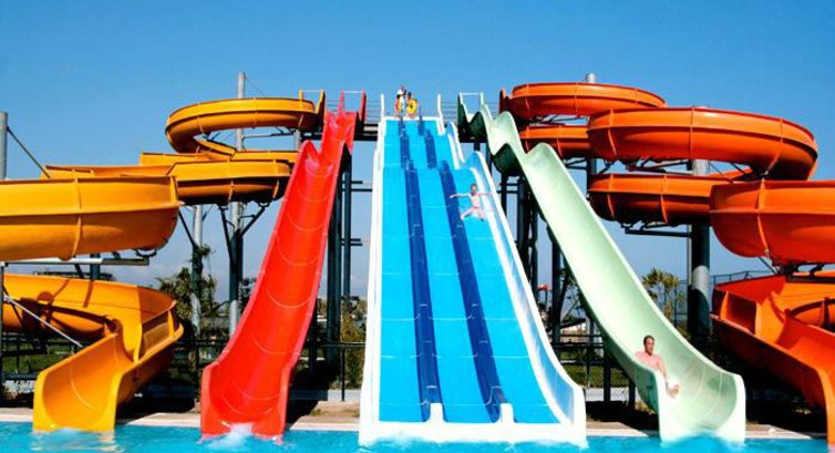 Бассейны не подогревались никак и вода в них не подогревалась и отчего то то не прогревалась (хотя температура воздуха была +23 +25) Есть горки ,но достаточно простые. Для 8-12 лет наверное было бы норм.