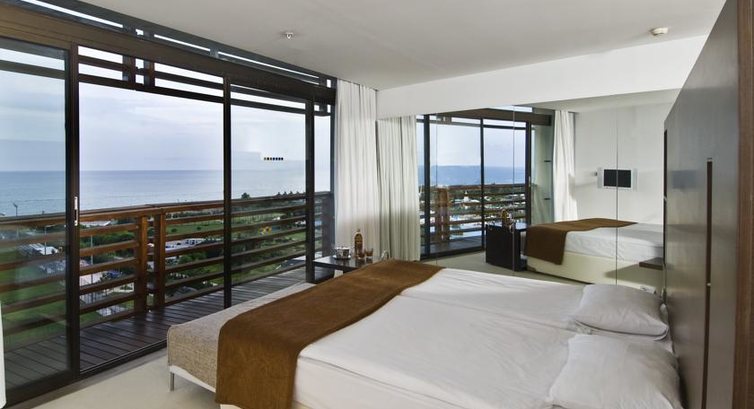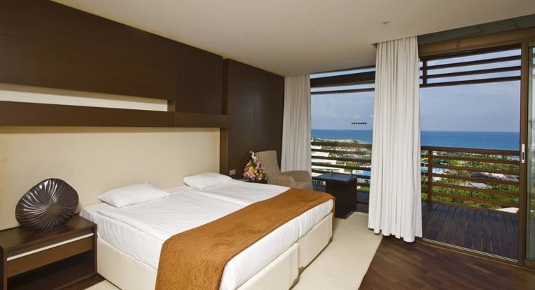 Отель находится в 20 минутах от аэропорта, поэтому в 6 утра были в отеле, выпили чай-кофе в лобби баре (24 часа) и в 11 заселились в семейный номер (8250) с видом на море. В номере бесплатный сейф и минибар, который пополняется ежедневно. Номер дали без доплат. Второй корпус смотрит на отель Барут, тихо-спокойно, ночью видно как приземляются самолеты в аэропорт Антальи.