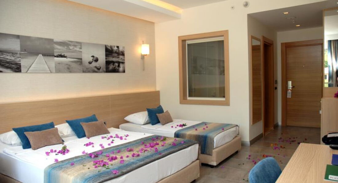 Отдыхали в Июне 2018 ровно 12 дней в этом 'Отеле'.. на фото и по отзывам нас все устроило... Пока не доехали в живую до него?. Сначала все шло нормально. нас встретили дали бумаги на подпись. сказали ждать пока дадут номер. (приехали в 10 ч утра) оставили вещи в Лобби. пошли в ресторан. а там пусто. из еды только вареные яйца ' омлет на воде и нарезанные овощи. детский стул грязный. столы грязные. (хоть и типа накрытые для новых гостей) кружки и тарелки все липкие и плохо помытые. Еда так и была вся однообразие... мясо нет. лишь котлетки и то все соевые. рыба вся на масле сделана. есть невозможно. для ребёнка еды Нет. нет даже микроволновки!!! Мне кашу в бутылке грели 15 минут!!! А На комфорки в кипятке????потом мы ушли к бассейну. Там ждали до 12. потом нам сказали номер готов.. + раньше на 2 часа. Номер на 3 этаже и это Да единственный +++ номера отличные огромные. Сам персонал типа вежливый... Но как только ты отварачиваешься они между собой начинают тебя обсуждать. Слышимость огромная. все слышно.... детской площадки нет... Она вся заброшена. тренажёрный зал весь испорчен. постельное белье все в пятнах..... И типа "чистое". фрукты есть раз в неделю!!! Алкоголь Весь разбавленный. сам персонал наглый и обнаглевший.. за любую услугу просят 'благодарность$$$'. Мы много раз бывали в Мармарисе... Но в этот отель больше ни ногой!!! Там Не 4* а все 2 лишь можно только дать. мой совет избегайте его. лишь получите не приятные эмоции. Мы там только ели (и то выборочно) и спали. больше не хотелось там находится.