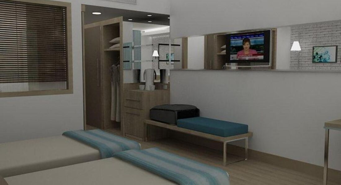 Номера большие, с хорошей мебелью, в номерах есть телевизор, фен и и пустой мини-холодильник.