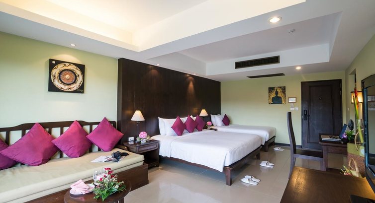 Типи номерів: • 54 deluxe (42 кв.м, 15 dbl/39 twin, макс. 2+1 чол, вид на сад, 11 пар номерів, що з'єднуються) • 54 deluxe family (47 кв.м, 2 dbl/51 twin+розкладна двоспальна софа, макс.2+2 чол, вид на сад, 13 пар номерів, що з'єднуються) • 144 deluxe grand family (54 кв.м, двоспальне ліжко+односпальне ліжко + розкладне двоспальне софа, макс. 4/3+2 чол, вид на сад, 38 пар номерів, що з'єднуються) • 18 beach front thai villa (54 кв.м, двоспальне ліжко, макс. 2+1 чол, поряд з пляжем, вид на море) Компліменти іменинникам – тістечко; молодятам – прикраса ліжка.У номері: • кондиціонер • ТБ (є російський канал) • телефон • Wi-Fi (безкоштовно) • сейф • стіл стілець • софа (крім deluxe) • міні холодильник • 2 пляшки води щодня безкоштовно • набір для приготування чаю/кави • ванна у ванній кімнаті (з туалетним приладдям) • фен • праска – на запит • балкон/тераса