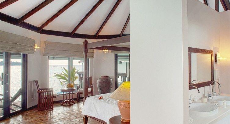 2 Maldivian Suite (70 м2, макс. 3 або 2+2 чол.). Берегові бунгало з виходом на пляж, розташовані в блоці на 2 номери (для розміщення сімей або дружніх компаній можна забронювати цілий блок). Номери формою нагадують морську раковину. Спальня, ванна кімната з ванною та зливовим душем на відкритому повітрі, вітальня, вбиральня.