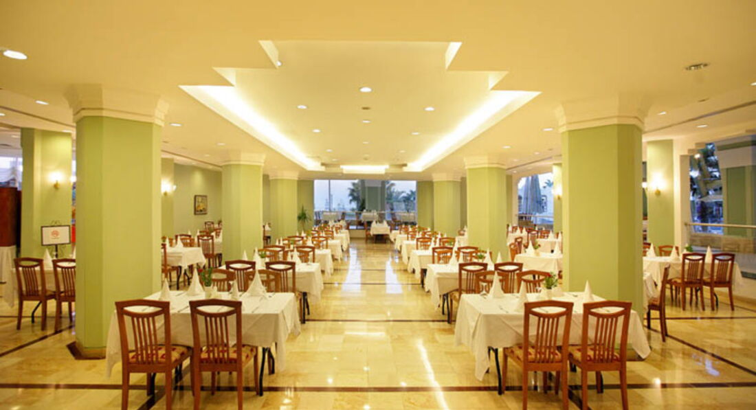 Бари та ресторани: головний ресторан розрахований на 550 осіб (критий, з кондиціонером, літня тераса, дитячі стільці), лобі-бар (24 години), бар біля басейну (10:00-24:00), диско-бар (23: 00-02:00), снек-бар (12:00-16:00). 2 ресторани A la Carte: італійська, рибна - відвідування безкоштовно 1 раз за час проживання, за попередньою резервацією.