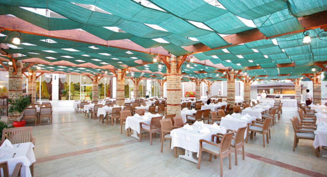 Увидев в своем ваучере приписку Ультра все включено, порадуйтесь и забудьте. «Ультрой» здесь и не пахнет. Ассортимент блюд небольшой, в обед и ужин ежедневно курица, индейка, белая рыба, один раз были розовые рыбешки, и, конечно же, полуфабрикаты в виде всегда пережаренных наггетсов картофельных и куриных и котлеток для гамбургеров, на гарнир всегда есть рис, картофельное пюре, картошка фри, пшеничная крупа или булгур, и даже гречка на детском столе. Спасает гриль - куриные шашлычки, шаурма (раз в недельку) и та же индейка зажаренная на гриле (как мне показалось облитая приятным химическим жидким дымом), а вот говядины, баранины, морепродуктов, раков не ждите, в этом отеле подают только птицу и рыбу (дешевые химические котлетки с претензией на говядину во внимание не берем). Всегда есть тушеные овощи, всякие брокколи, обилие непонятных йогуртовых, макаронных салатов, свежие овощи зелень. К моему огромному удивлению в отеле не подавался нарезанный лук, который очень вкусный в Турции, всегда его стоит целая миска, но не здесь. Вторым удивлением было присутствие оливок только на завтрак. На обед и ужин вы не найдете ни одной оливочки, нет. Десертов приличный выбор, из фруктов были арбузы и дыни (кстати трижды в день), сливы, яблоки, апельсины, мандарины, виноград, на ужин подается мороженое. Что касается завтраков – традиционно это блинчики, пончики, яйца, омлеты, картошка фри, жареные колбаски (кошки не едят и мы не стали) и химические сосиски в лучших традициях отельных завтраков, есть какие-то кашки, обилие варенья и пара видов выпечки без изысков. Что касается ассортимента основного ресторана – голодными не останетесь, мы уходили с полными животами каждый раз, проблема в том, что есть с чем сравнить :)