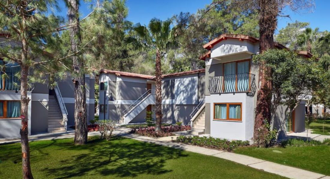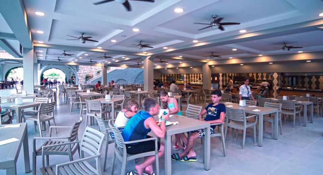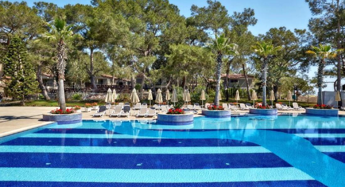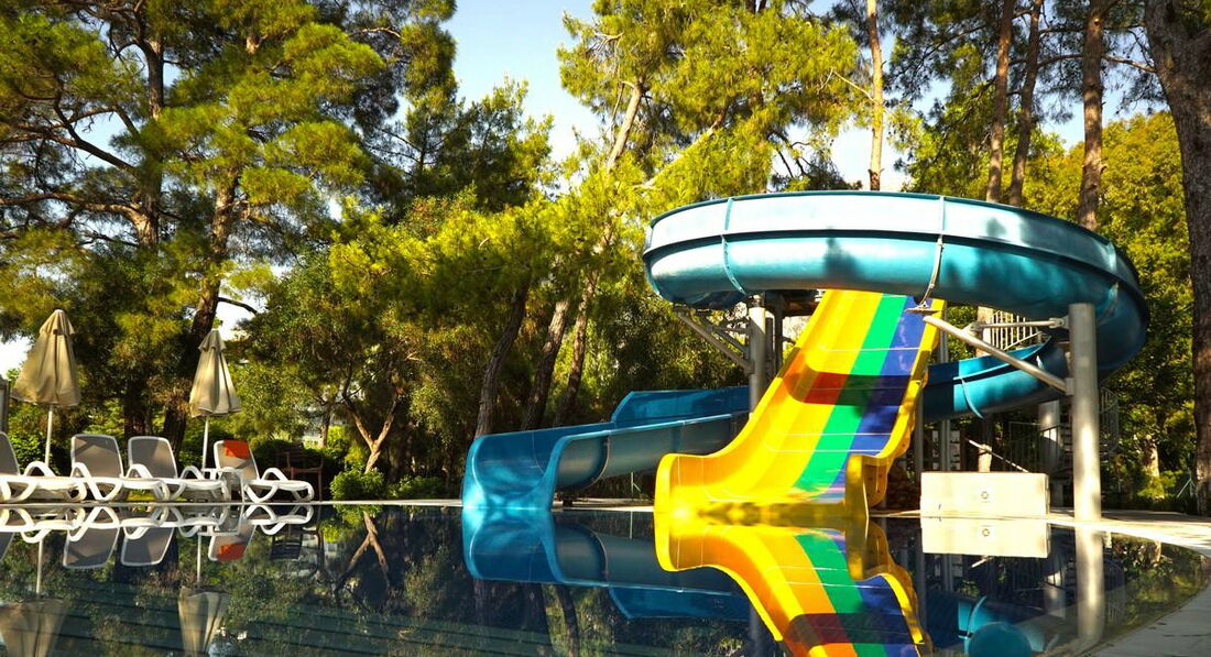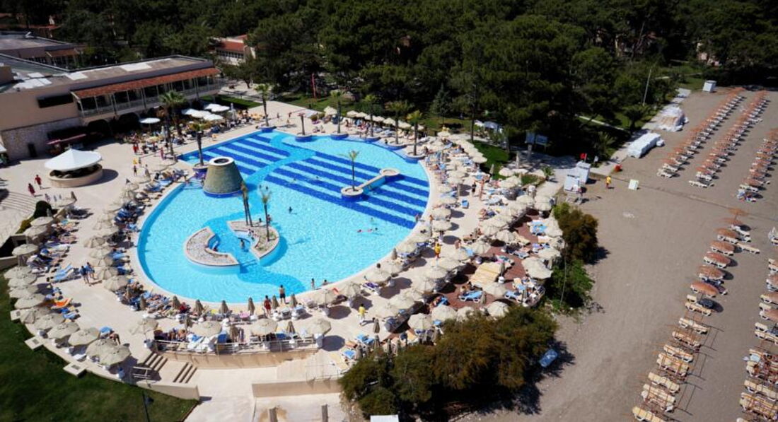 Хороший отель-очень зеленая ухоженная территория, вкусная еда, веселые аниматоры. В номерах тихо, так как сцена и дискотека находятся в отдалении (ближе к морю). Аниматоры устраивают конкурсы, занимаются с детьми, играют в волейбол, боччу, дартс. Работали деская площадка, горки. Хорошие вечерние программы. Нам все понравилось )
