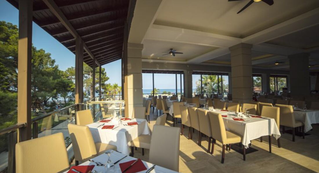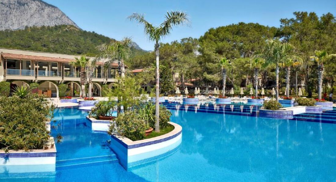 Прибыли в отель рано утром в 8 часу, сразу заселить не смогли т.к. отель был переполнен взяли наши вещи, одели браслеты и отправили на завтрак. спустя 3-4 часа заселили в номер(учитывая что по расписанию заселение в 14:00 то ставлю + отелю за понимание). Отдых проходил просто великолепно отель очень крутой, территория огромная все засажено пальмами, соснами, различными плодовыми деревьями (мандарин, апельсин, мушмала, гранат, грейпфрут, карликовые бананыи т.д.) встречаются кактусы, можжевельник, и агава и много разных цветов и кустарников в общем красота не неописуемая, вид на Таворские горы завораживает. До пляжа рукой подать, берег песчано галечный в море везде галька. На пляже 2 пирса с которых можно зайти в воду, очень удобна для тех кто не хочет ходить по гальке. При отеле есть очень хороший СПА с профессиональными массажистами, делали там пилинг в турецком хамаме (Хамам хороший) и массаж. Ресторан большой находиться на 1 и 2 этаже, кормят просто обалденными блюдами, даже самый привередливый в еде человек найдет там себе что поесть. Десерты и фрукты в огромном кол-ве. Лепешки турецкие, мороженное, все различные закуски и рыба всякая в рыбный день. Почти все бармены, сотрудники ресторана, ресепшна и администрация отеля говорят на русском с языковым барьером проблем не возникало, если плохо понимают в дело вступает английский язык. Есть несколько бассейнов все ухоженные чистые возле каждого стоят лежаки с зонтами. Есть место для детей с большим бассейном горками и различными детскими развлечениями. Хорошая команда аниматоров состоящий из турков(девушек и парней) и русскоговорящих украинок. Каждый вечер шоу и дискотека.