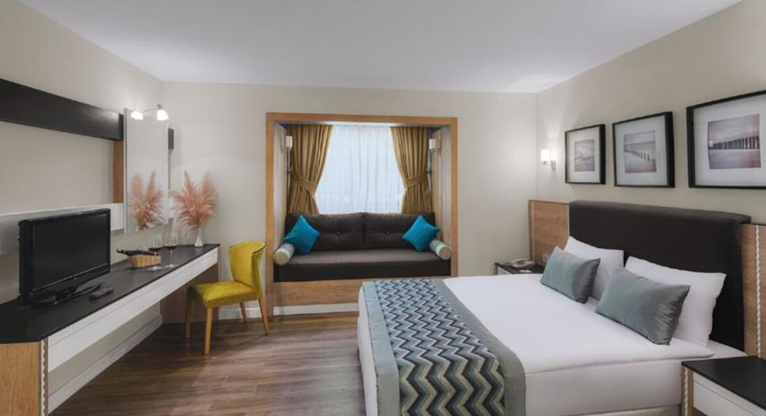Отдыхали 26.07-07.07 семьей с 3 летним ребенком. Отдельно хочется в тысячный раз упомянуть наш "любимый" пегас. Булочка (кстати неплохая, как потом оказалось)с кофе в полете длительностью 3,20 это сильно. Но на обратном пути пегас превзошел себя-булочку кушать было невозможно. Ехали от отеля 1,20 примерно. Это большой плюс. Заселили в garden room(он и был забронирован )2511-новый отремонтированный. Вместо доп спального места-альков. Красиво и приятно. Не буду описывать, номера прямо как на картинке.
