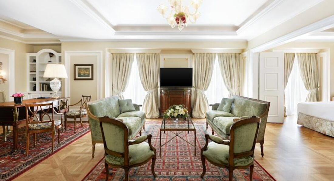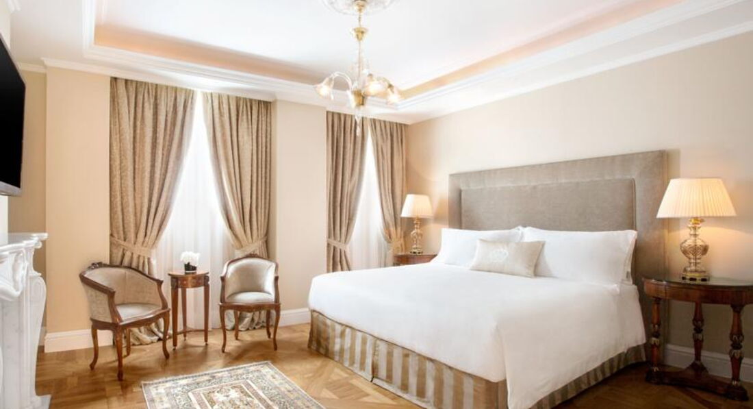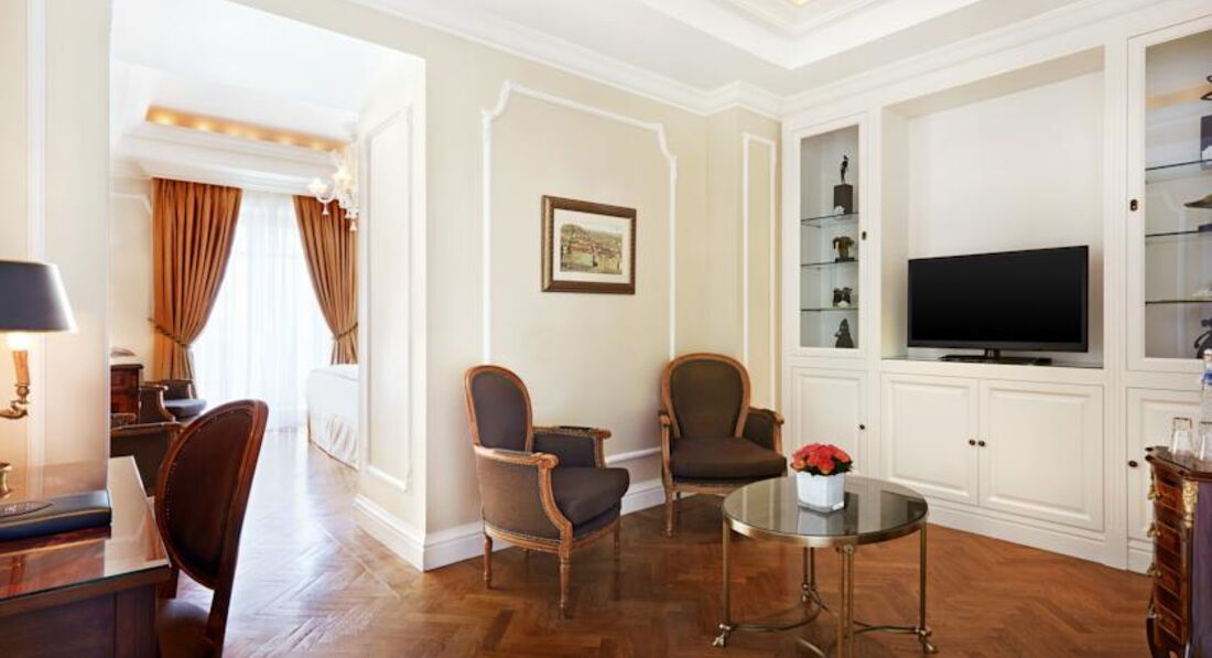 grand suite (спальня та вітальня без дверей, камін, осн. ліжко – двоспальне, дод. – односпальне ліжко, макс. 3 чол., 43–45 м2), є можливість об'єднання номерів.