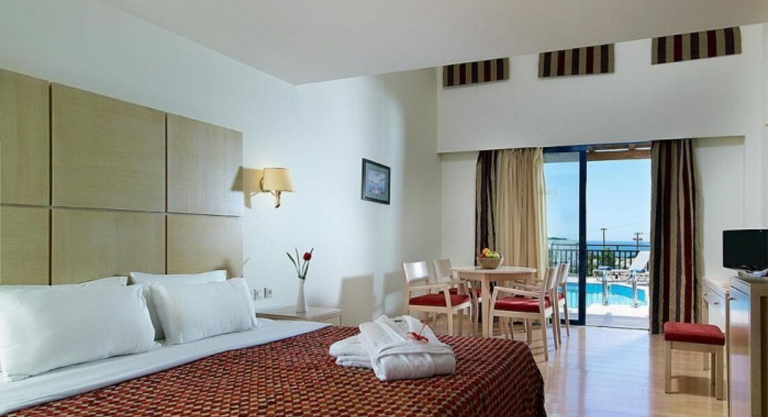 family room sharing pool (двокімнатний номер, спальня та вітальня з дверима, основне ліжко – 2 односпальні, дод. – софа та розкладне ліжко, доступ до загального басейну, макс. 4 чол., 25 м2);