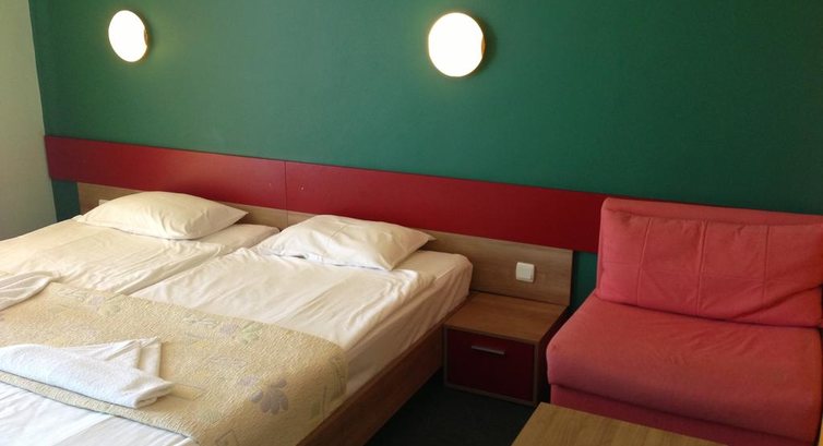 Про питание. Это самый главный минус отеля! У нас были завтраки и ужины. В предыдущих отзывах говорили о единообразии ассортимента; я хочу отметить не это, а низкое качество приготовления пищи. На завтрак и ужин используется в основном не высокого качества мясные и колбасные полуфабрикаты. Гарниры приготовлены с большим количеством местных специй и масла. Т.е. для здорового питания крайне сложно выбрать что-либо. Могу отметить только мюсли с йогуртом, кашу овсяную, и дважды был хороший куриный суп-лапша, и ВСЕ!!!! за 10 дней! остальное- пицца, макароны, колбаса. Салаты с огромным количеством майонеза. Просто зелени нет! Фрукты -арбузы/дыни/персики-они жесткие. В кашах огромное количество сахара! гречневая, рисовая каша- невероятно сладкая, я даже, просила передать повару- что каша для российских туристов просто не съедобная. А манная каша- это молоко с несколькими крупинками манки, которые плавали как в супе. И что удивило нетолько меня, а и другие туристы отмечали-кислая! в смысле начавшая портиться брынза! В Болгарии- не свежая брынза!... И что особенно огорчило- это ПЛОХО ПРОМЫТАЯ, жирная посуда! посуда со сколами! На столах не хватает солонок/приборов со специями. Сами приборы-жирные, все облиты маслом, да и маслом это назвать трудно- практически прозрачная водичка, без вкуса и запаха, по консистенции идентична уксусу. В кафешках на улице кормят лучше, и ты можешь выбрать, или уйти в другую, или просто в магазине купить йогурт.
