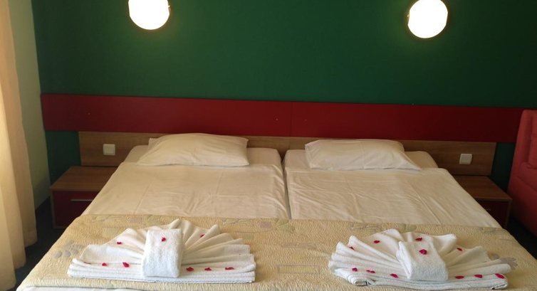 Были на отдыхе в этом отеле две недели. Очень спокойно, никто друг другу не мешает. У бассейна лежаков хватало всем, на пляж идти через дорогу. Мы проходили немного влево, за лежаками отличный вход в море. Очень приглянулось кафе "Дельфин" (напротив отеля), приятное обслуживание, цены чуть дешевле, чем в других кафешках. По вечерам живая музыка, музыкант Румен поет очень красиво, в его репертуаре много русских песен. На день рождения нашего сына мы заказали в "Дельфине" столик, был эффектный вынос торта под аккомпанемент музыканта, было очень приятно, что к нашему семейному событию подошли так душевно. Так что, если кто-то будет, то отдельный привет от москвичей официантам Сергею, Веронике и Ралисе!