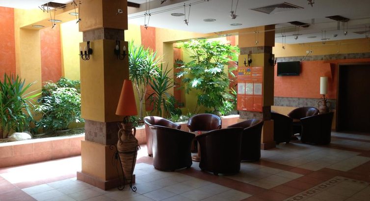 Наконец то руки дошли написать отзыв и об этом отеле, в котором мы отдыхали с подругой ( в кои то веки вырвались). Особо много писать не буду - да и не о чем особо. Отель небольшой - находится на краю курорта Солнечный берег (самого большого как я поняла) - если стоять спиной к морю, то справого конца. Отель небольшой - мы брали номер на двоих и по питанию только завтраки. Завтраки стандартные как везде: яйца всех видов, чай кофе и сок, мюсли там всякие и так далее. Номер чистый и аккуратный, но не очень большой. Территории у отеля как таковой нет - но есть довольно приличный внутренний дворик с бассейном, шезлонгами и растениями в горшках. Отель больше похож на отель городского типа - народу немного, сервис хороший. До моря надо прогуляться минут 5 (200 метров). Пляж общественный, зонтики и лежаки платно. Из минусов отеля могу назвать только два: первое это то, что отель находится за дорогой, поэтому приходится переходить ее, когда идешь на пляж. И второе - это конечно то, что нас очень развеселило - мы доплатили тысячу рублей, когда покупали тур - за вид на море. Придя в номер и посмотрев в окно, моря мы не увидели=) Позвонили на ресепшн - к нам поднялась девушка и показала в далеке тонкую синию полосочку - МОРЕ=)))) так что господа, если морем хотя бы пахнет - то это вид на море=) не советовала бы преплачивать за вид - если кому это совсем принципиально, то берите отель ближе к морю. В своей ценовой категории я считаю это лучший из всего, что мы посмотрели в каталогах=) Советую для отдыха с друзьями, парам и может быть с подростками, но не с маленькими детьми.